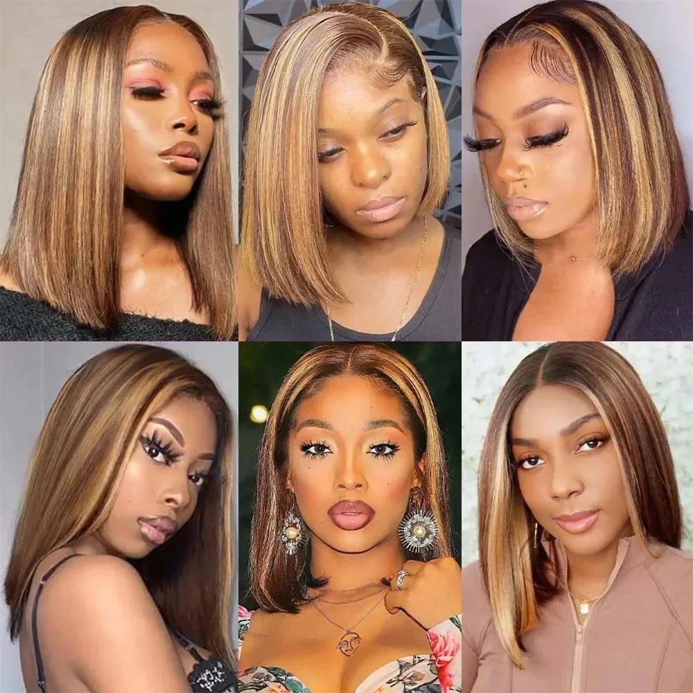 13×4 Lace Front Bob Wig – Straight Remy Hair with Highlights