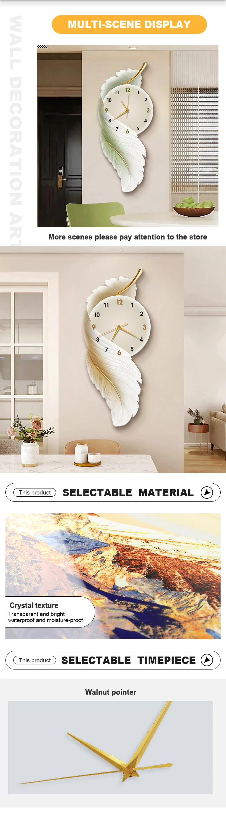 Enhance your home with our Artistic Feather Wall Clock for Luxury Spaces. This exquisite piece combines functionality with stunning artistry, making it a perfect addition to any sophisticated environment.