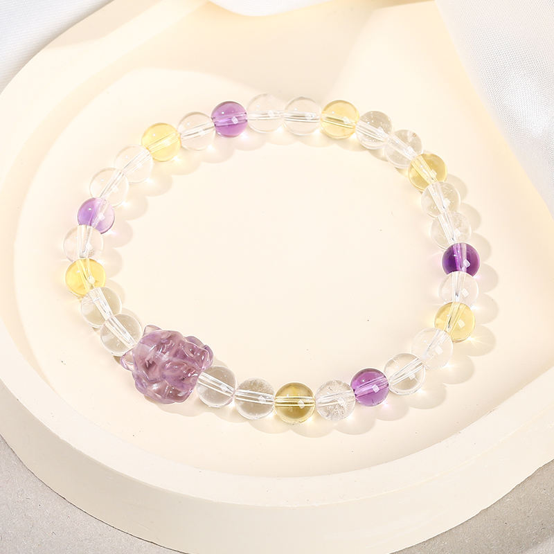 To maintain the beauty of your Fashionable Healing Quartz Crystal Bracelet, avoid exposure to water and harsh chemicals. Store in a cool, dry place when not in use to preserve its natural luster.