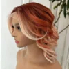 Lenaqueen Short Wavy Orange Wig – 13×4 Synthetic Lace Front with Futura Heat Resistant Fiber