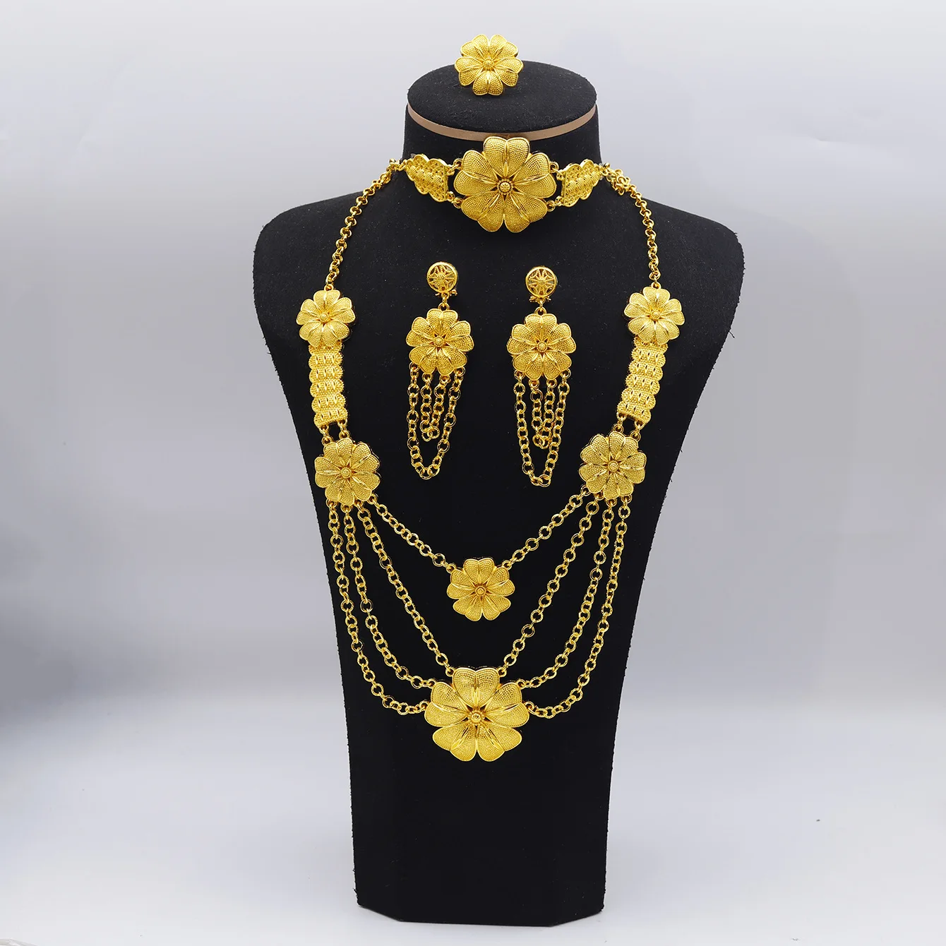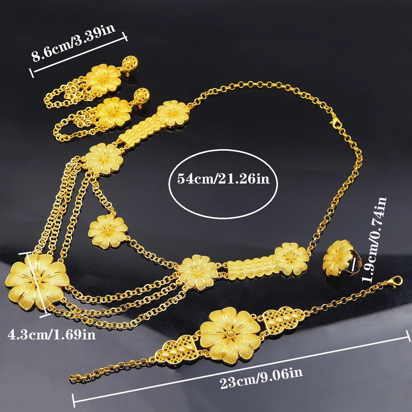 - Material: Crafted from high-quality materials with a luxurious gold plating, this jewelry set radiates sophistication and durability, ensuring you shine throughout your celebration.