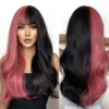 Elevate your style with our Pink Black Ombre Wavy Wig with Bangs – Heat Resistant Cosplay Hair today!
