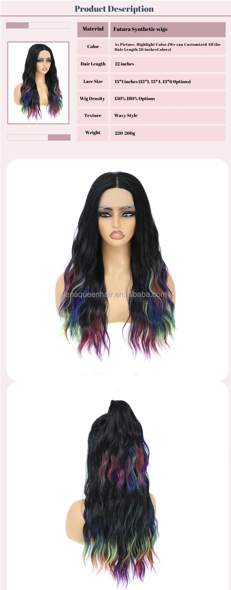 Step into a world of vibrant imagination with the Rainbow Cosplay Glam Lavender Lace Front Wig, the perfect accessory for any cosplay enthusiast or fashion-forward individual. This stunning wig features a captivating lavender hue and long layered locks, designed to elevate your look and make a bold statement.