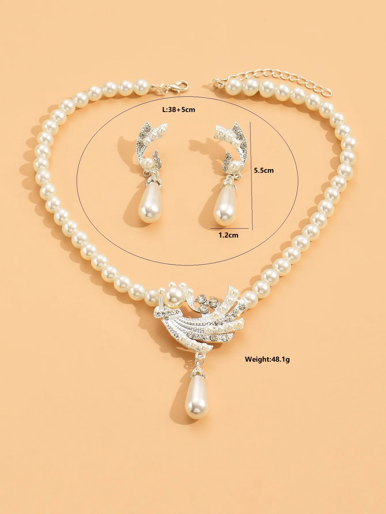 - Earrings: The matching earrings are designed to dangle delicately, featuring pearl drops that catch the light beautifully, adding a touch of movement and sparkle to your bridal ensemble.