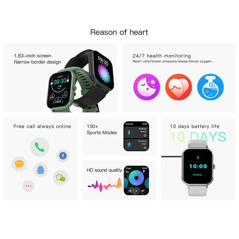 • Smart Notifications: Receive calls, messages, and app notifications directly on your wrist, keeping you connected while on the go.