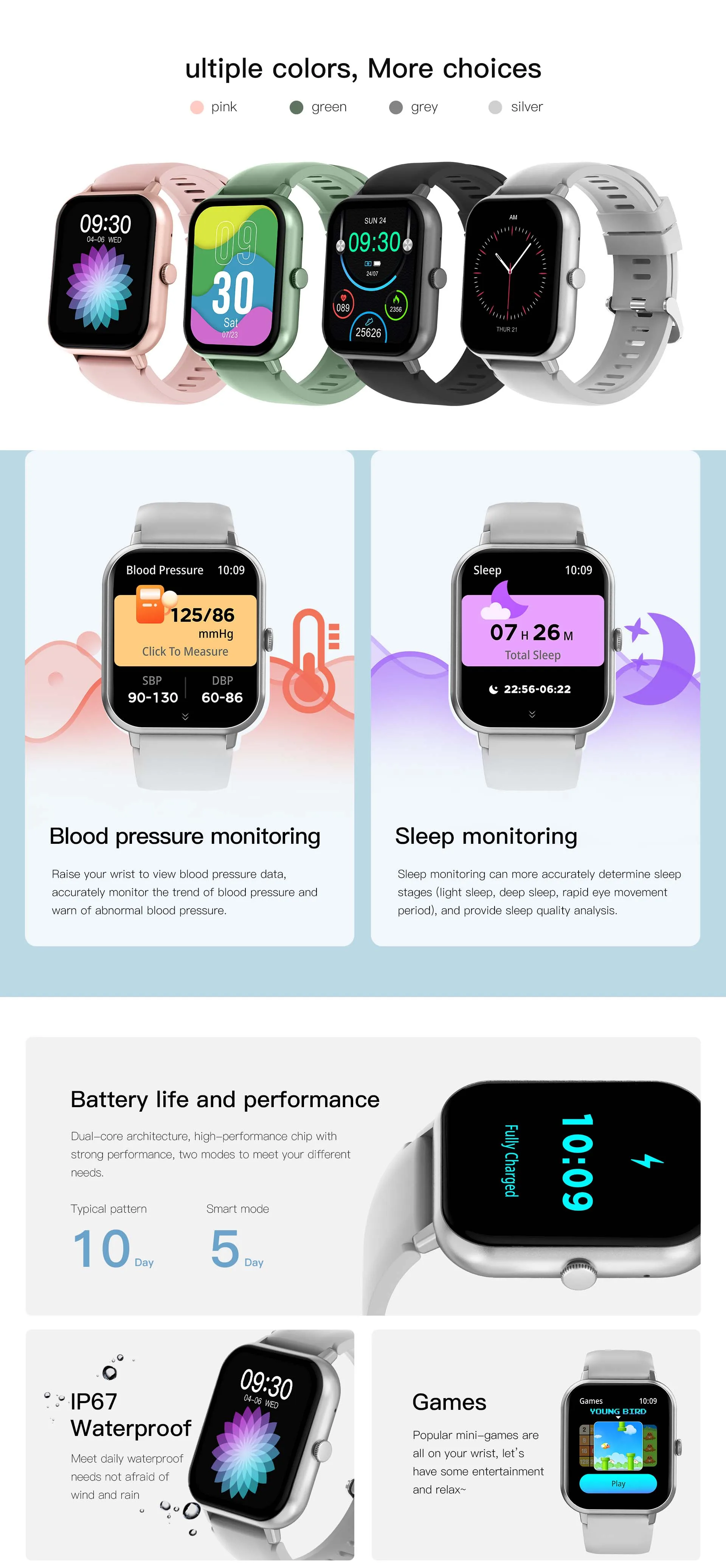 • Sleep Mode Support: Track your sleep patterns effortlessly. The smartwatch monitors your sleep quality, helping you understand and improve your rest.