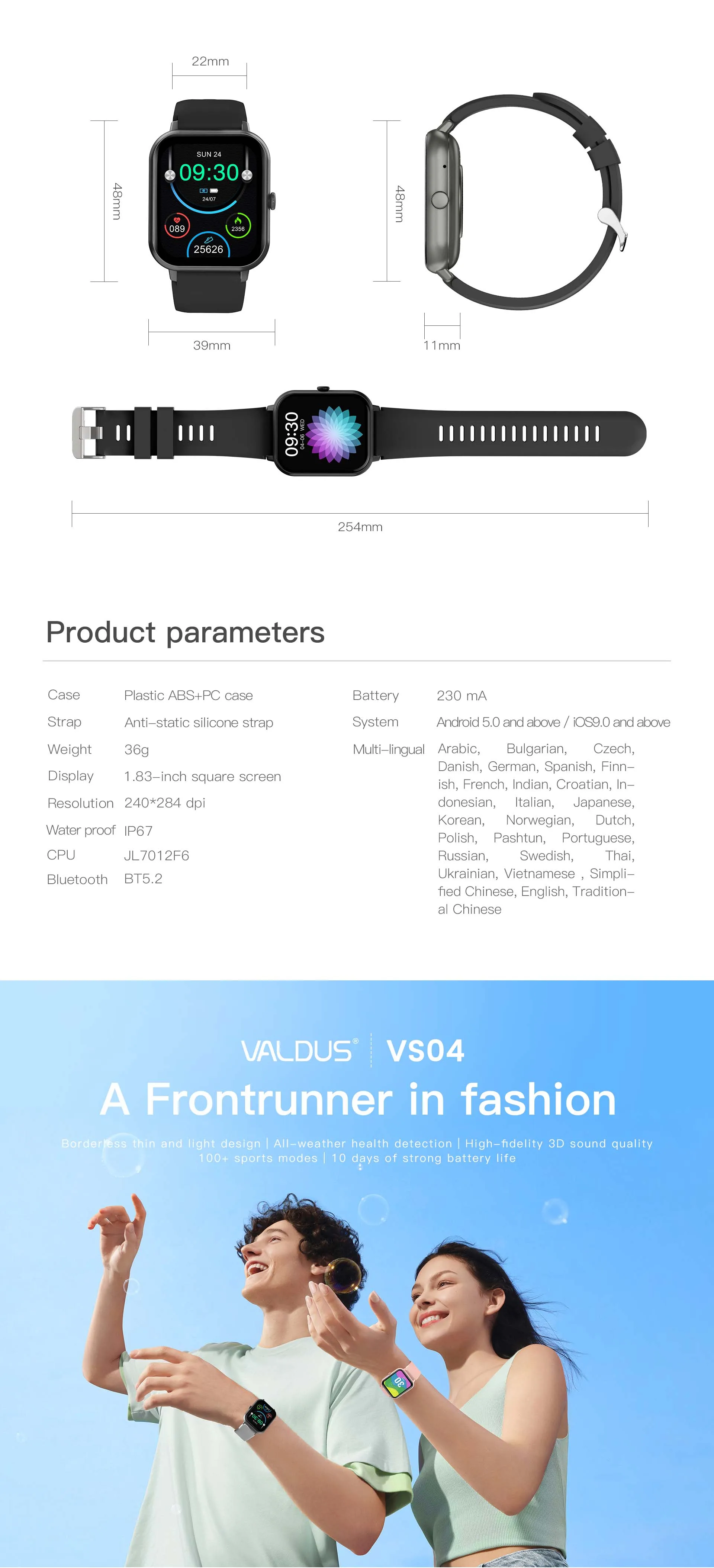 Introducing the VALDUS AquaFit Smartwatch, your ultimate companion for a healthier lifestyle. Designed for versatility and durability, this smartwatch combines advanced health monitoring features with a sleek, waterproof design, making it perfect for both fitness enthusiasts and everyday users.
